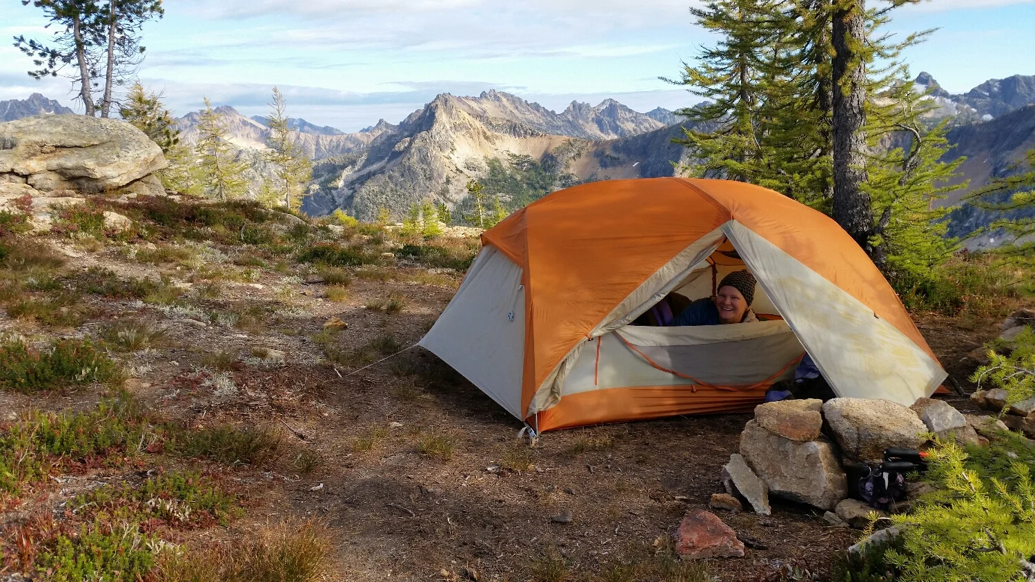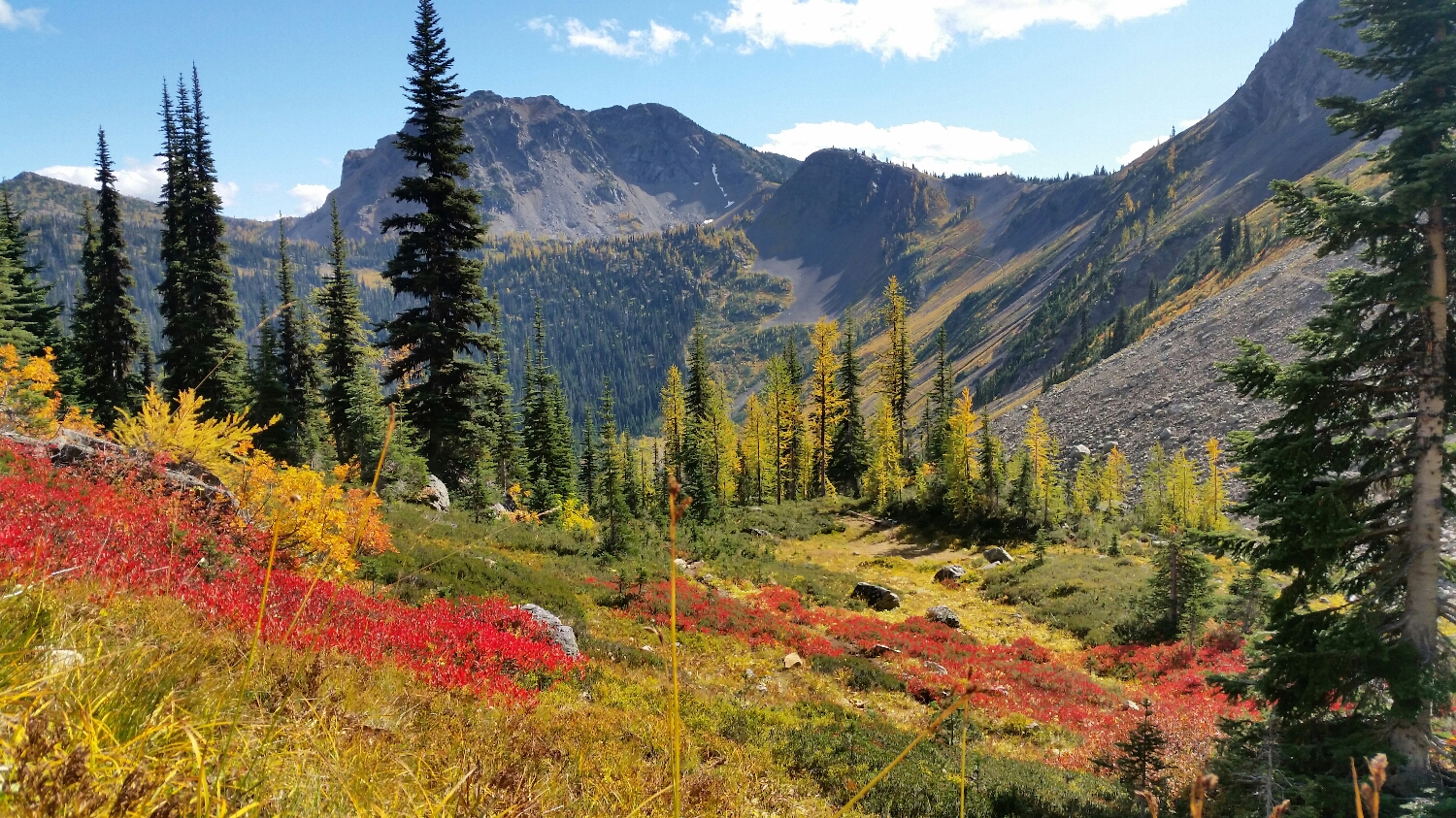 Fall was upon us and Northern Washington looked like an artist’s palate. The huckleberries and blueberries turned a intense dark red, the mountain ash were a fiery orange and the larch turned a brilliant yellow. I had no idea what larch were before the trail, but they are a sub-alpine needle tree and are deciduous - meaning they turn colors in autumn and loose their needles every year. We hiked pass to pass in Northern Washington, similar to what we did in the Sierras. The extra time we had each day, gave SketchPad the opportunity to fill her journal with even more paintings to document the end of the journey.