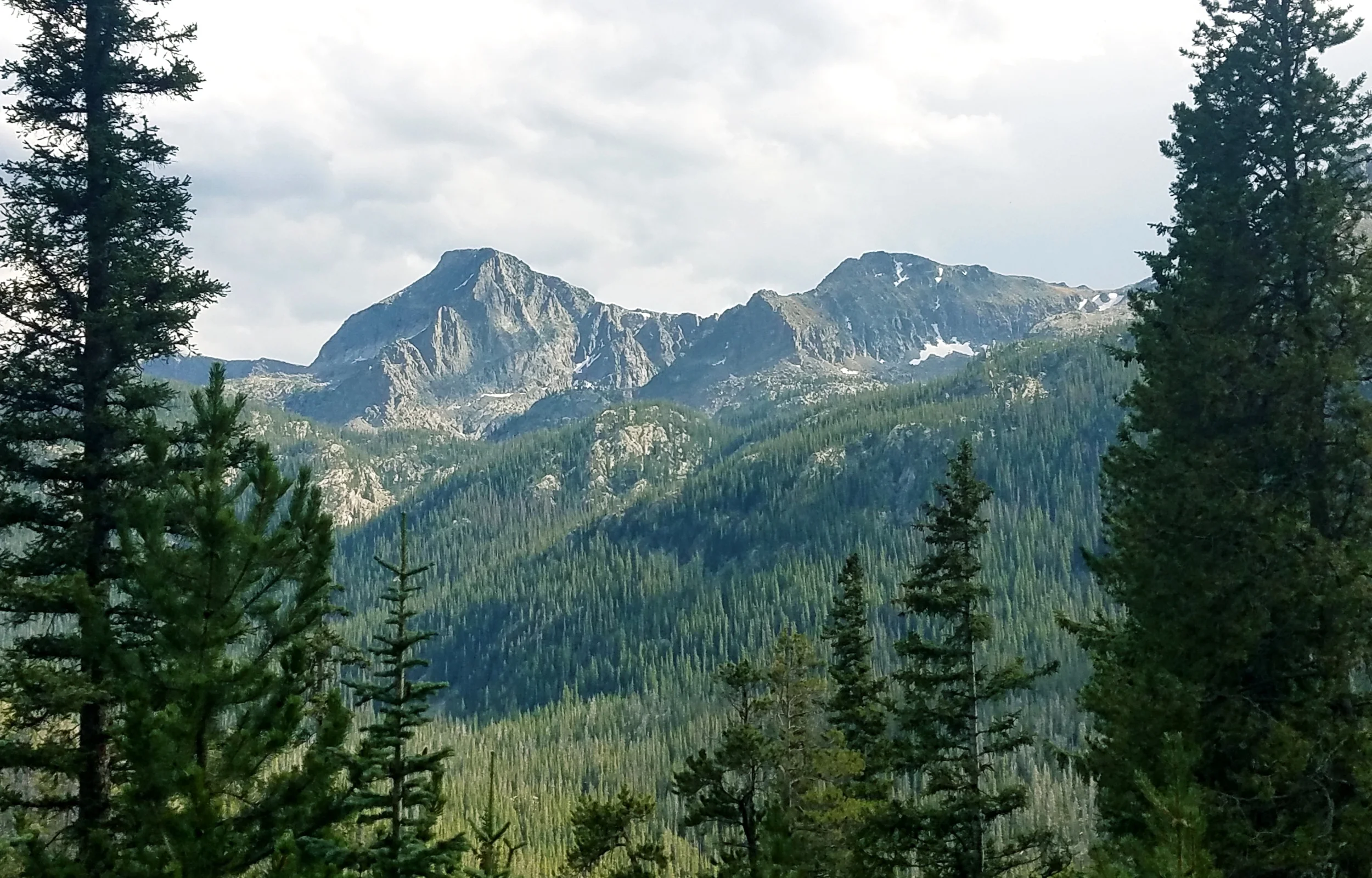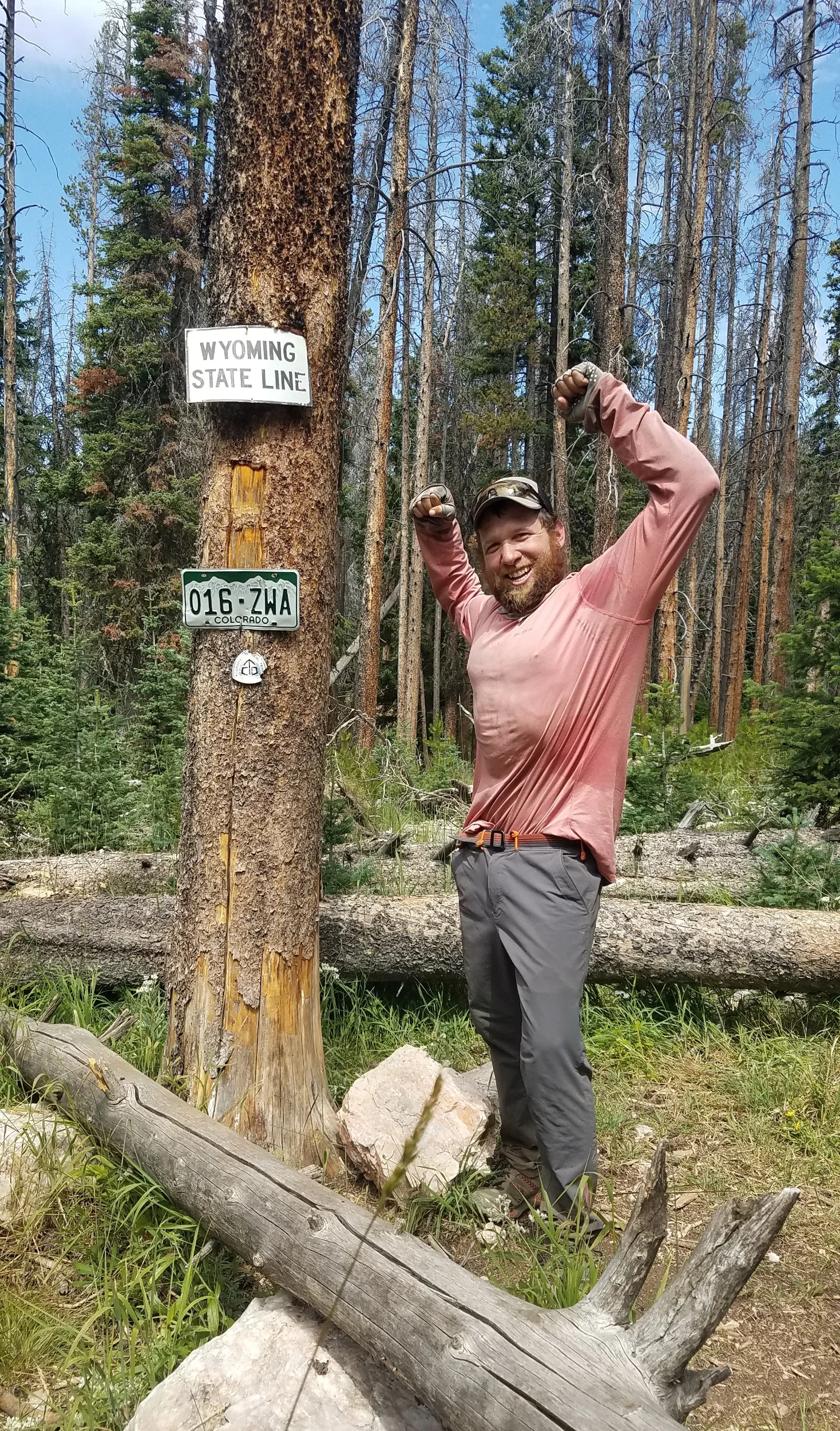 The next day I was walking through the forest where I spotted a license plate on a tree. I had been looking forward to this day for a long time as it marked the state line between Wyoming and its southern neighbor. I was so excited I did a photoshoot (since I mostly hike by myself that involves my trekking poles, rubber bands and my camera timer). I hit the trail hard after the border crossing, mostly because I had mentally prepared myself to hike at 14,000 feet and climb over non-stop jagged mountains. While that time will come, the Northern section of the state is relatively chill. I went over a few 12,000 foot passes but mostly hovered around 10,000 and was below tree line. I crossed a few snow fields and took my breaks at high alpine lakes. It didn't take long for me to forget I was in the desert just a few days ago.