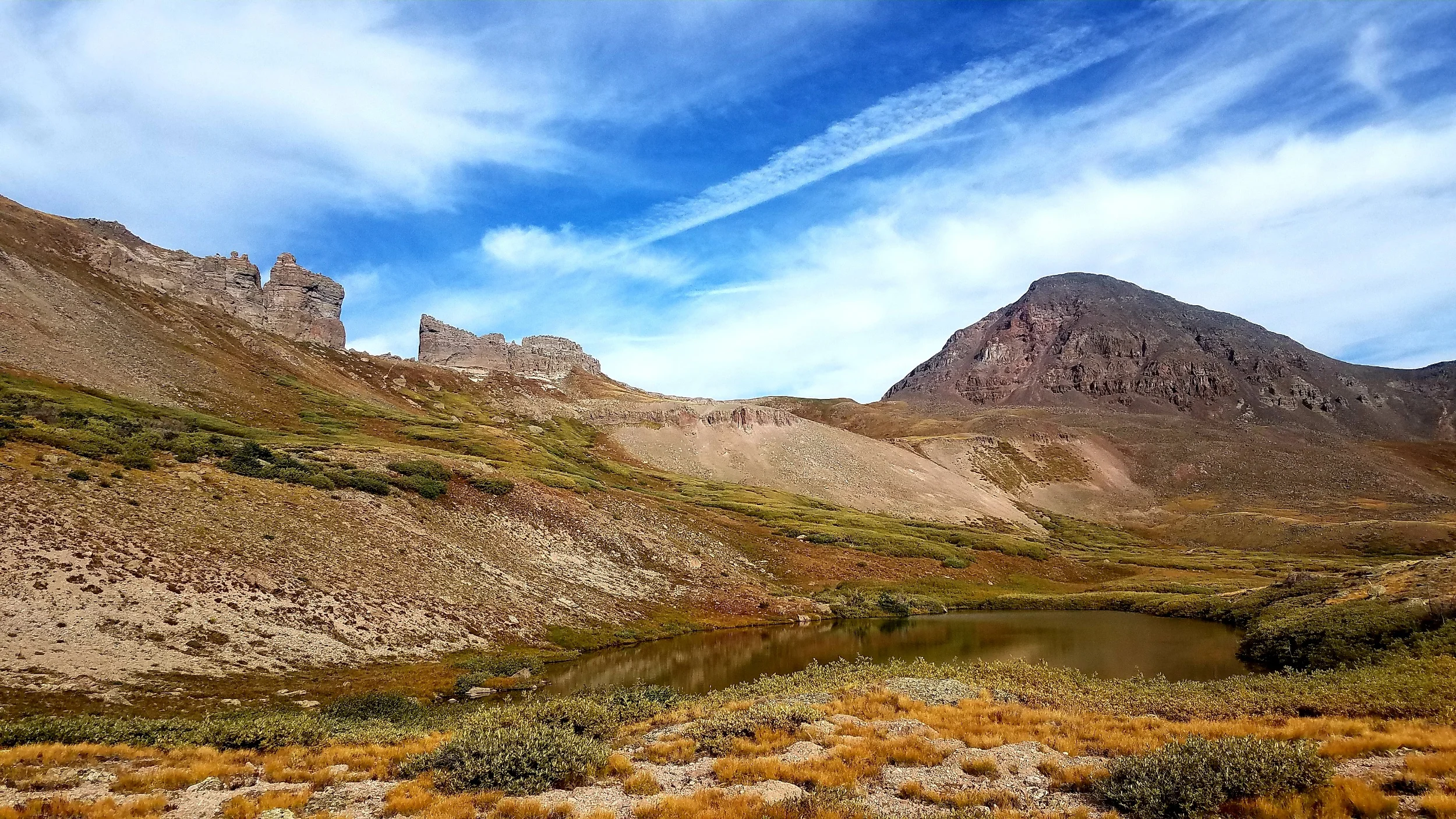 I knew the San Juan Mountains were going to be epic but I really had no idea just how marvelous these mountains were going to be. I have taken over 400 pictures in 6 days! The San Juan Range is super unique in the diversity of the topography. There are sharp mountains, flaking mesas, spires, jagged ridgelines, balds and pyramids all surrounded by equally diverse valleys. The views are endless and can change dramatically in less than 100 yards as more peaks appear over every ridgeline and down every valley. The tops of even more mountains peak out from every view making the horizon look like an endless sea of castles. Being mostly above tree line I'm not walking through a lot of fall foliage but I can see down the valleys as the aspen and willows change colors. It looks like an artist loaded up their brush with green, yellow, red and orange paints and just splattered the paint across the lower valley walls.