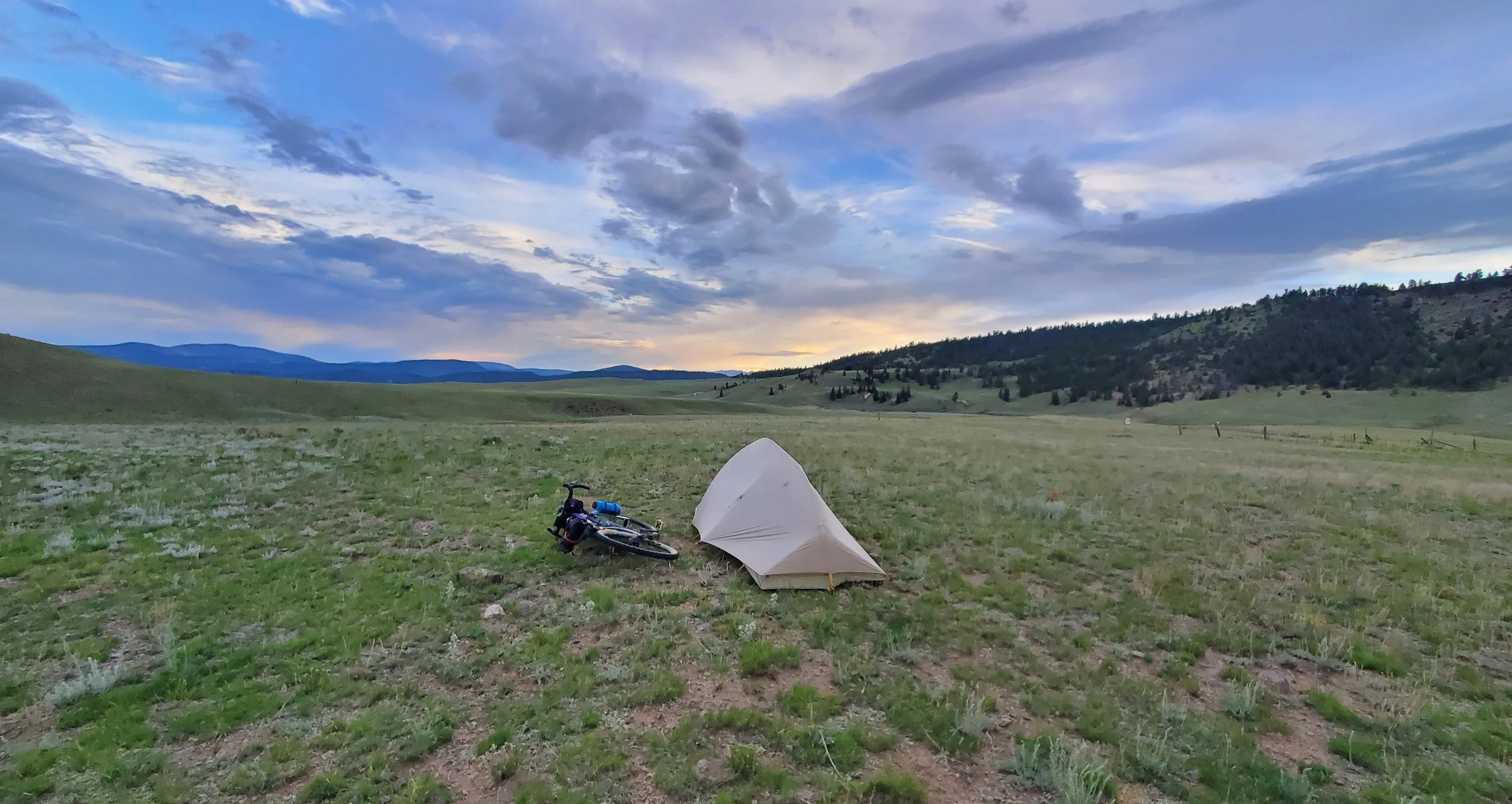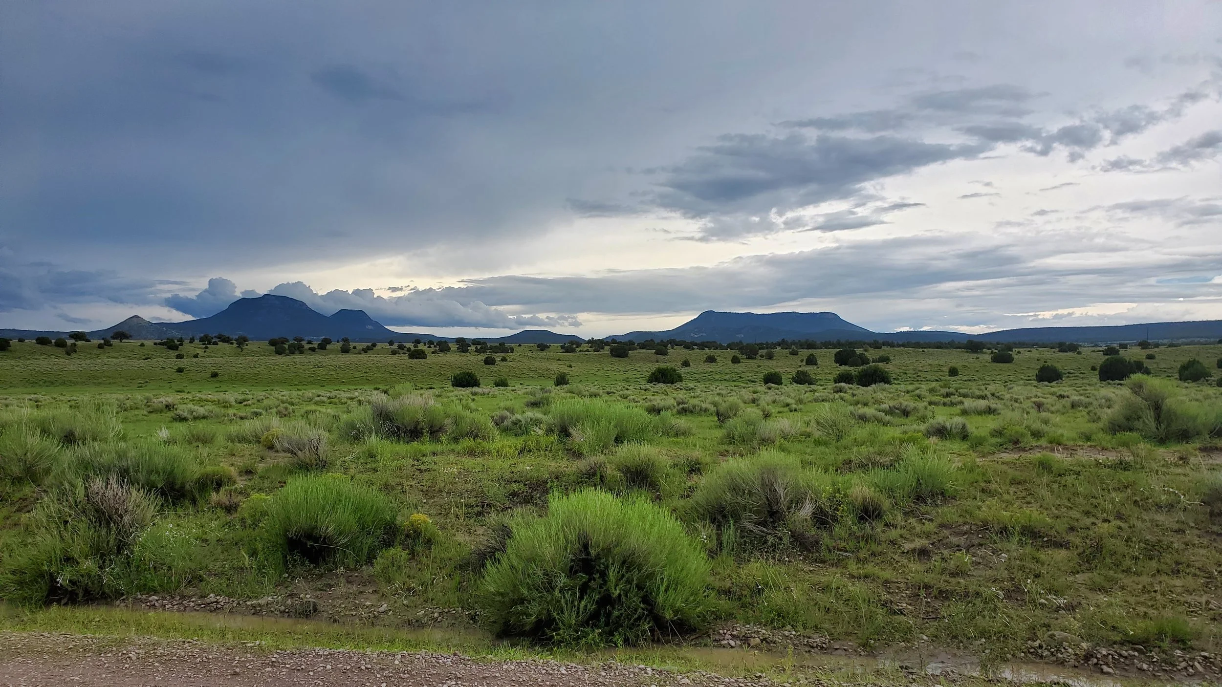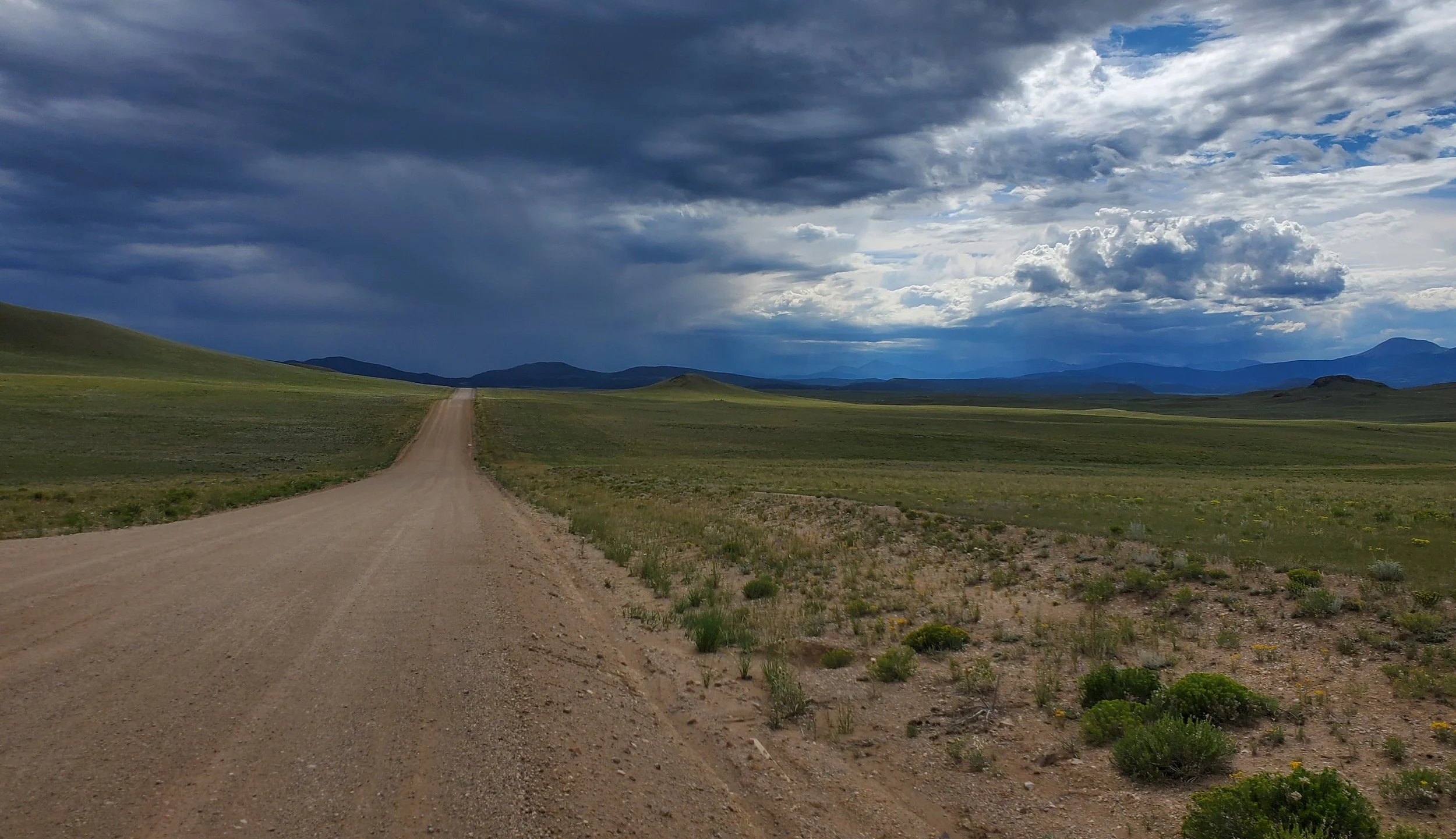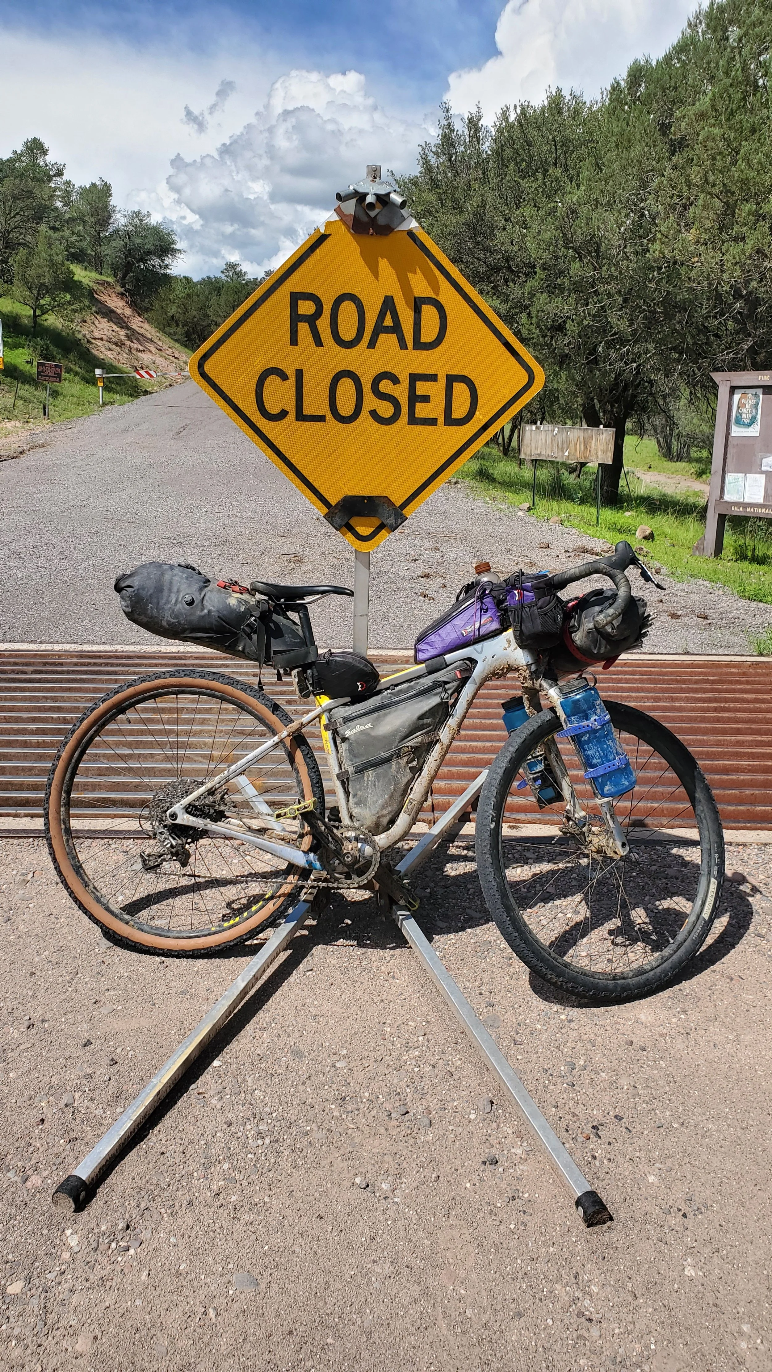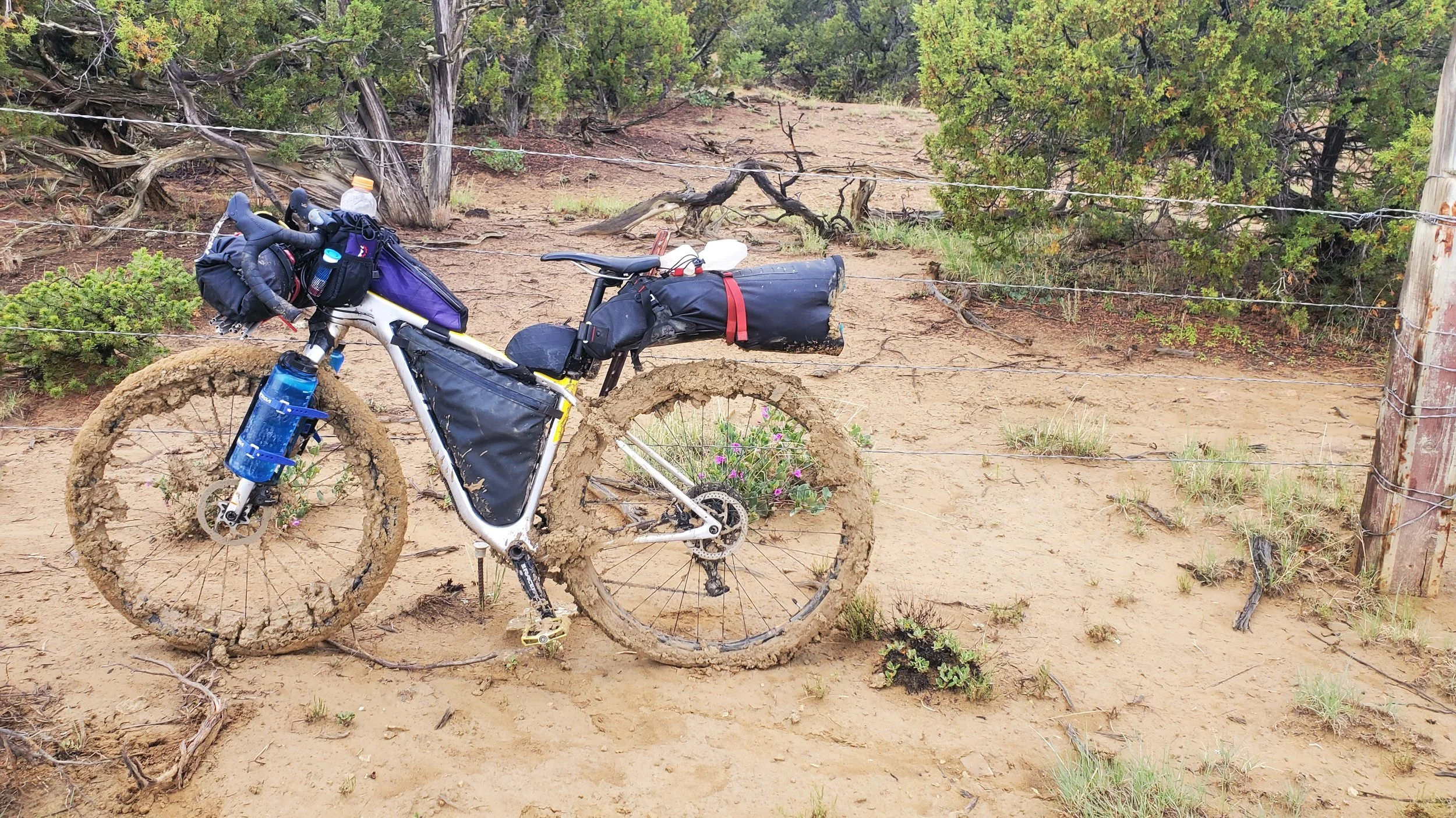 Taz and I made it to Grants the next evening after camping in the middle of nowhere near some abandoned cabins. There isn’t a ton to do in Grants and if I was feeling strong I would have blown through it, but I wasn’t and grabbed a motel as I started to look at the ending logistics as I was now less than 400 miles from the border. I got an early start the next day to try and beat the afternoon storms but got stopped in my tracks around 1 pm as the skies just opened up and lightning was dancing across the sky not far from me so I stopped and took a break in a ditch. I was hanging out in the ditch when I saw two riders approaching and low and behold it was MJ and Karolina, the Polish couple, who I hadn’t seen since the crazy storms in Whitefish, MT. The two of them stopped and we hung out as we watched the storm pass in front of us. After the storm was far enough away we continued down the road but after about an hour of riding we got completely bogged down in the mud, we couldn’t even push our bikes because the mud was clinging to the tires and getting stuck between the tires and the bike frame so we literally had to pick up our bikes and carry them. Karolina’s bike was covered in so much mud that it became too heavy for one person to carry so we actually had to have two people pick up her bike. We carried the bikes 500 yards to a flat spot. It took us over an hour to get our bikes there and all we could do is laugh and set up our tents.