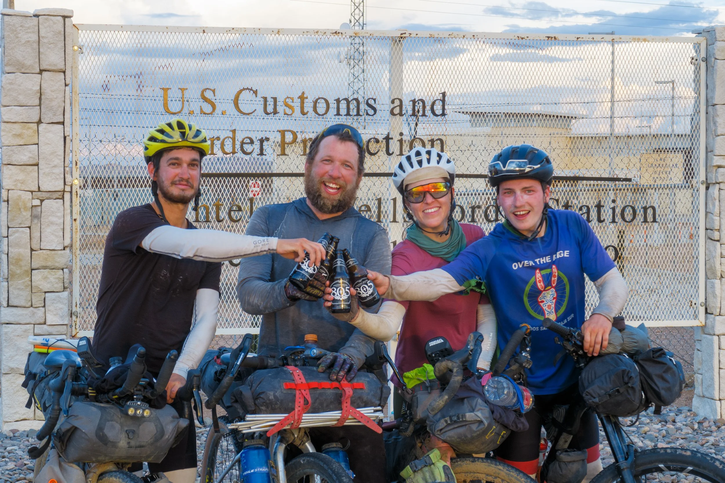 I set my alarm for 3 am and was riding by 345am. I made it to Silver City a little after 7 am and grabbed a quick cup of coffee and met up with Tyler who had finished 4 days earlier but was waiting for Taz. Tyler gave me a pep talk of a lifetime and suggested that I fuel my entire day on baked goods from the coffee shop which I thought was the best idea I have ever heard and filled my backpack up with pounds of sweets and took off down the road. I was on a mission and didn’t stop pedaling till noon when I caught up to the crew. I couldn’t believe I caught them and was exhausted as I was averaging 15 miles per hour which may not sound like a lot, but on a fully loaded bike on gravel trails that is hauling ass. I had done 80 miles by the time I caught them and had another 70 miles to go. We all took off together and formed a line where we could draft off one another. The tiny town of Hachita was 30 miles away where we all took one last break. This was my opportunity to call it a day as I had already done 110 miles and I was so tired I had a hard time standing up, and forming complete sentences was out of the question. With the border so close and my friends with me, I said fuck it and went for it. The last 40 miles were a slog, it was all paved but I was completely gassed. There were mile markers along the road and I restarted the same song every time I passed a marker and tried to make it to the next mile marker at the same spot in the song every time to keep my pace consistent.